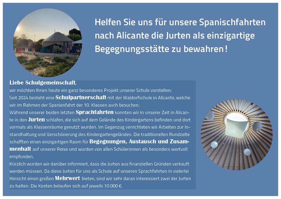 wir richten uns an Sie, um Ihnen ein ganz besonderes Projekt in Alicante – Spanien vorzustellen. Um dieses Projekt weiterführen zu können, möchten wir Sie um Ihre Spende bitten. Hintergründe zum Projekt und zum Spendenaufruf finden Sie im Folgenden. Wir bedanken uns bereits jetzt herzlich für Ihre Unterstützung und Ihr Engagement.