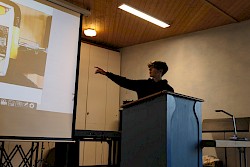 Wenn der schriftliche und der praktische Teil fertiggestellt sind, hört die Arbeit nicht auf. Denn nun folgen die Vorträge. Dazu gehört auch der Aufbau von Präsentationsständen. Alle Schüler*innen gestalten eine Ausstellung ihrer Themen für die anderen Schüler*innen der Schule sowie für die Eltern, die auch zu den Vorträgen eingeladen werden.